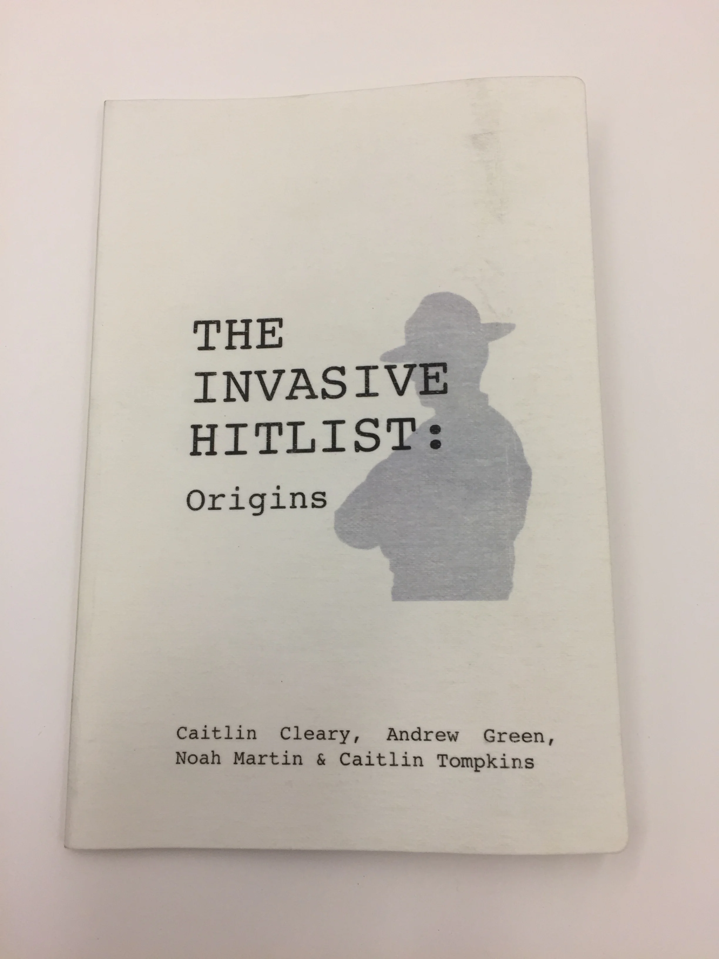 Despite the range of problems that invasive species cause, and the fact that the public (intentionally or no) plays a large role in facilitating the spread of invasives, awareness of this issue is very low. We at The Invasive Hitlist have decided to tackle this challenge by writing a series of booklets as a new alternative to the traditional pamphlet. The Invasive Hitlist: Origins is a hardboiled detective novella that is entertaining, creative, and conveys a range of basic information about invasive species to a broad audience.